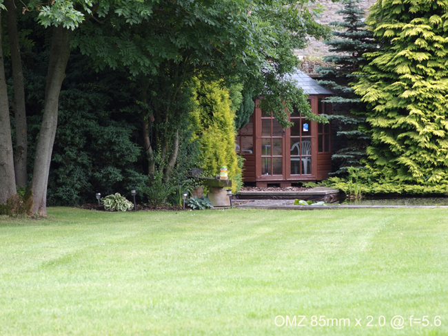 85mm x 2.0: Focus easy with MF assist 10X. No areas to check for purple fringing. As soon as we get to telephoto length the OMz's start to shine. I've had terrible results with this lens on the E-1/E-500 but it is improved on the E-P1. Sharpness is pretty good but not as good as I'd expect - probably because this lens was designed as a portrait lens with slightly soft focus; it is reasonably to quite sharp at f=5.6. The result at f=2.0 is way softer and is spoiled by a lot of ghosting; the version at f=11 is equal to the 5.6 result with no evidence of diffraction. Because of the 2X crop factor the EFL is 170mm making this lens a good fast medium telephoto; but the results wide open are ghosted and only improve with stopping down which negates the speed advantage. It is not really usable wide open but OK when stopped down and is quite sharp to about f=11.