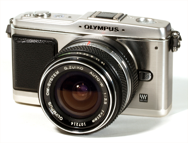 E-P1 with MF-2 adapter and OM Zuiko 21mm/3.5 - a small and ideal 'standard' lens equivalent to 42mm.