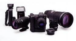 I think it fair to say that from around 1996 corporate thoughts on further development of a silver halide SLR system camera ceased. Why? No doubt the lack of will to embrace SLR auto-focus lens technology played a big role leaving Olympus with considerable ground to make up on its competitors. And of course the realisation that the first stirrings of the digital revolution might threaten silver halide must have played a part in boardroom decisions. Olympus pursued the new digital technology by developing the Camedia range but perhaps was unsure just where silver halide would end up in the future pecking order. Having said this the company gave us the opportunity to support OM by introducing the OM3Ti with its superb 35-80mm x 2.8 Zuiko zoom said by many to be one of the finest lenses ever made. Looking back there is little doubt the latter years at Olympus Camera Division seem to be filled with both contradiction and inscrutability. In drawing a conclusion it seems pretty obvious to me where Olympus thinks the future lies and silver halide is not (technologically or developmentally) on top. It would be unkind to think of ‘eggs and baskets’ and in many ways the company is hedging its bets. But the strategy is now clear: silver halide = compact 35mm, mass digital = compact Camedia and professional SLR development = high investment digital. Having reached this conclusion we can now see just how important the introduction of the E1 is to the company and from whence stem the lines of comparison to OM system. | |