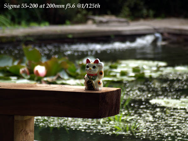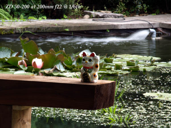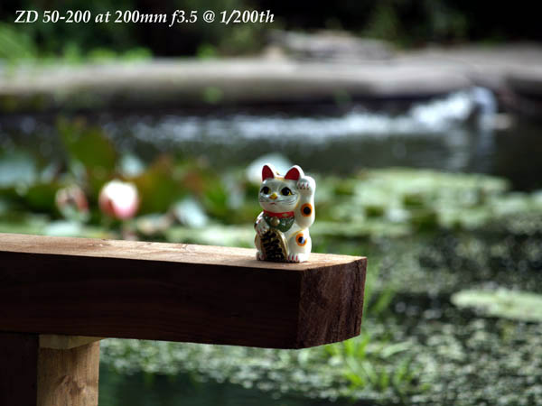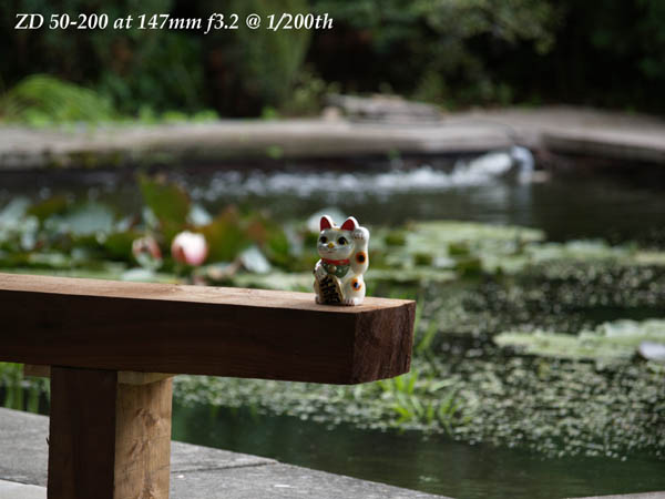 OPINION Compare the way this Maneki Neko or 'beckoning cat' either disappears into the fussy background or leaps out at the viewer. This effect is directly attributable to lens bokeh. The larger the aperture available, the better the effect. Judge for yourself. The ZD 50-200 has it by miles.