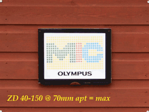 COMMENTS: At 70mm there is not much difference between both ZD's. While the Sigma is not giving as good edge definition it is slightly better than the ZD's on colour. All three are starting to sharpen, improve on contrast and improve edge definition. On balance I put the ZD 40-150 marginally ahead though there's very little in it.