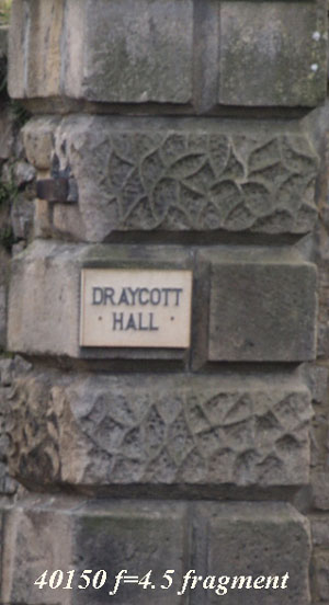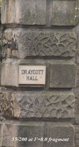Above are two crops from the originals. Notice how the crop from the f=8 fragment sharpens up from the one wide open. It's definately sharper, not dramatically but enough to be quite evident. Even so this is an excellent performance from a 'budget' lens. To get maximum resolution stop down a notch or two although, even wide open this zoom will give you good results if you are struggling for light.
