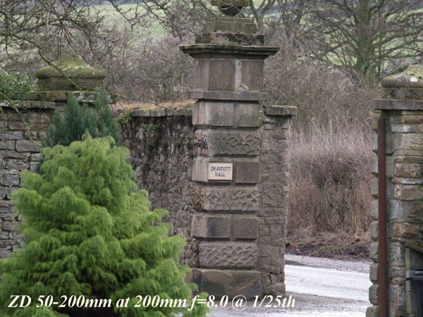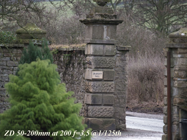 COMMENTS: At 200mm the ZD 50-200 is again the winner. Its better optical construction gives it the edge for all my parameters. Remember this test is at a few score feet from the target only. The Sigma is extremely good for a budget offering but it cannot compete with the more expensive ZD.