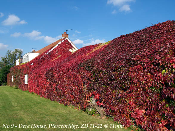 OUT ON TEST PART 2: As the weather is still holding I head a little more easterly to take photo's of a roadside house next to a Roman Road called Dere Street, linking Piercebridge to Catterick. The house is clad in Virginia Creeper and in this first week of October it should be nicely turning red. Sure enough it is a wonderful sight:
