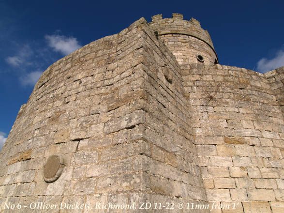 I'm within about 3 feet of the of the Duckett walls. At this close proximity the ZD11-22 at 11mm easily captures the whole Duckett. I could get closer and still get it all in, but the ground is especially uneven here to try and keep the camera near horizontal and plumb. (No-one said it was easy!) I'm very pleased with this lens' capability; more so - I'm impressed. The distortion effect is what attracts many people to wide-angles. Using this inherent distortion you can exaggerate it to produce some dramatic effects. Now satisfied with the first part of my field test - well, I'm in a field aren't I? - I see what effects I can make. Moving to within a foot of the Duckett wall and tilting the camera well back I frame this next shot: