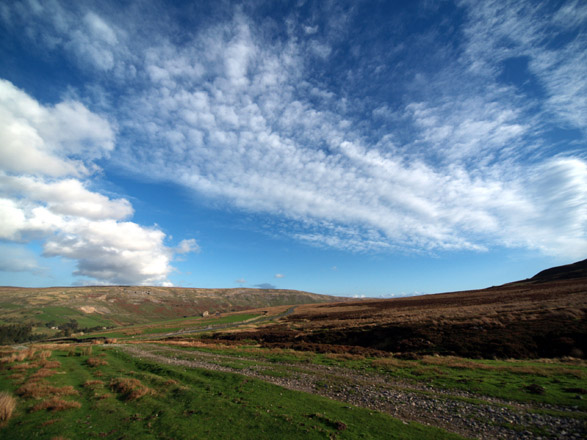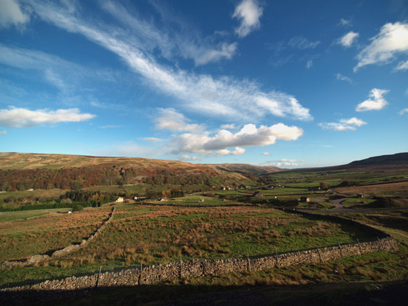 SKIES: The skies throughout this section are a pretty true rendition of reality. You will know the ZD 7-14mm cannot be fitted with any filters though these results suggest use of a circular polariser. Of course the late autumnal light is contrast laden which skews the results too. I'm not alone in noticing this inherent trend of ZD wide-angle lenses to produce a 'polarised' look. In my review of the ZD 11-22mm, I made similar remarks to which Jens Birch offered this explanation: "There is indeed a polarizing effect with wide-angles just by the sheer fact that the light strikes the lens surface at a variety of angles, including the so called Brewster angle where the reflected light is 100% polarized and the transmitted light is partially polarized. This angle of light incidence is reached on different areas of the objective lens element depending on the shape of the element and the zoom setting. It could in theory also happen internally but I doubt that, considering the retrofocus construction." However this effect is so striking and seems to be more pronounced with the ZD 7-14mm than the ZD 11-22mm I wonder if there is more than this at work here. It originally occurred to me if the effect was something to do with the telecentric design of the 4/3rds lens 'straightening' the light as it passes to the ccd? FURTHER SCENIC IMAGES: These images came from a second days testing. Previous attempts were either spoiled by the weather or my rheumatoid arthritis! However, here are a few selected shots from those sessions. Certainly the ZD 7-14mm excels at skyscapes. Here is the sweep of mid Arkengarthdale moor looking south-east towards Reeth. At 7mm the lens captures an enormous angle - sometimes more than can be appreciated in the image.