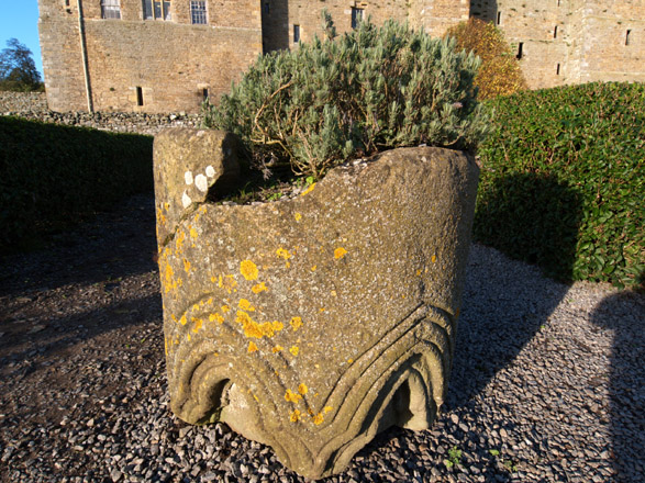 As I wander back towards the base of the castle I come across this piece of ancient carved stone, now used to grow Lavender. It's a substanstail bit of stone being around 2 foot in diameter and about 27" high. It seems a good subject for a bit of closeup work; this shot is taken from about 10"