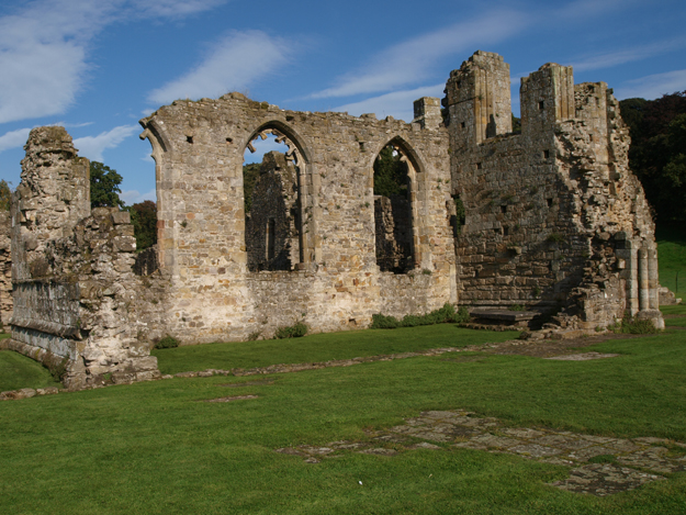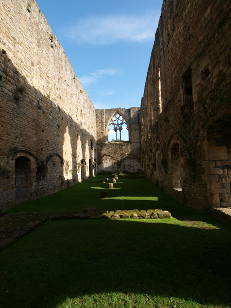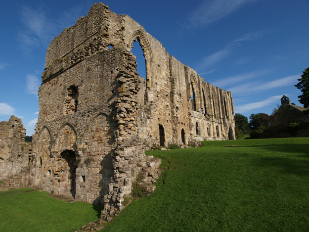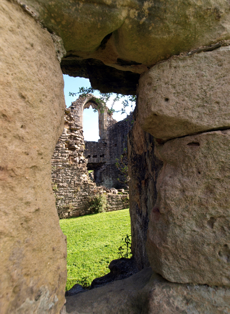 FIELD EXAMPLES: In my quest for samples for your perusal, I decide to have a trip to Easby Abbey, a ruined 14th century monastery, followed by a short detour through Richmond to 'The Batts', a waterfall and rocky outcrop in the path of the River Swale. The morning is pretty clear and bright with wondeful blue skies but this lasts only 35 minutes before it dulls in with heavy cloud cover. Damned British weather....