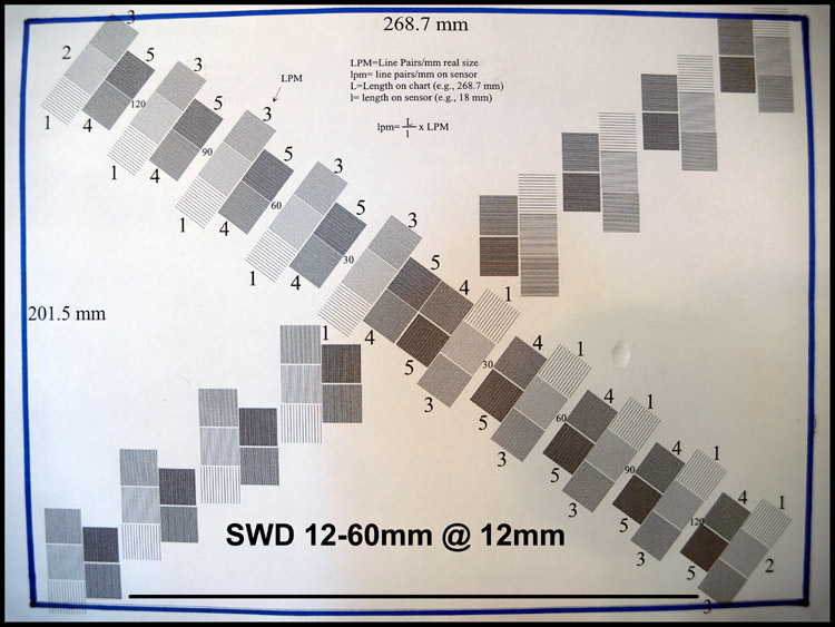 CRITIQUE: I've got little to add to the above results and comments. Yes, the SWD12-60mm suffers from barrel at its widest, but are we really surprised considering (a) its wide capabilities, (b) it is a zoom and (c) it is the wide end of a 5X zoom. Though not shown I tested the lens at 35mm also and was pleased to see the amount of barrel diminish significantly, to the point where its effect would hardly be noticed even in architectural work. The result at the long end is most satisfactory.