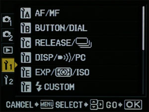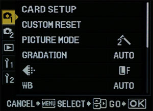 When any exposure control button is pressed all lighted icons go out leaving only the one requiring change illuminated. Adjustment/selection of the attribute is done via front or back control wheel. With familiarity comes the ability to change exposure settings without taking the eye from the viewfinder. COMMAND SCREEN: The E-3 maintains the top plate command screen. This is the second means of accessing and changing exposure information.