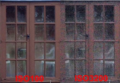 CRITIQUE (INSIDE): Yes, there is noise starting at around ISO1000 but it is well controlled. ISO1600 is perfectly usable though had I compensated for the overexposure there would have been slightly more noise, still, this is a good result. The same goes for top ISO result and the level and type of noise are well within my acceptance tolerances but your opinion may differ. If you shoot RAW most developers have a reasonable NR feature in built; if you shoot jpg then software such as Noise Ninja (recommended) will easily remove this without impinging too much on resolution. There is a slight loss of detail but it is marginal. I have not sampled with NR set to ON. We know this in-camera processing is a compromise between lessening the impact of noise at the expense of sharpness, and inevitably sharpness loses out. From past experience and where required on noisy images, I use post processing NR software where the user has some input into how far this compromise is pushed. However, I've got to say that NR on the E-3 is very conservative and the best suggestion I can make is you test it yourself and reach a view. ISO PERFORMANCE TEST 2 OUTDOORS: METHOD: In test 2 (now the weather is a little better) I use the summerhouse as a target that is sufficiently far away to be focused at infinity. From this series of shots at ISO 100, 200, 400, 800, 1600, 3200 I crop out areas from the predominantly lightest and darkest areas of the image to see the impact of noise at each end of the spectrum. The images are straight from the camera with no post processing other than re-sizing and cropping. Camera settings: Aperture Priority, Picture Mode=Natural (with all at default), WB=Cloudy, f=5.6, shutter AE determined, Comp= -0.3, NR set to OFF. Again no adjustments were made to the series during shooting.