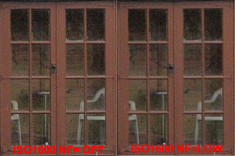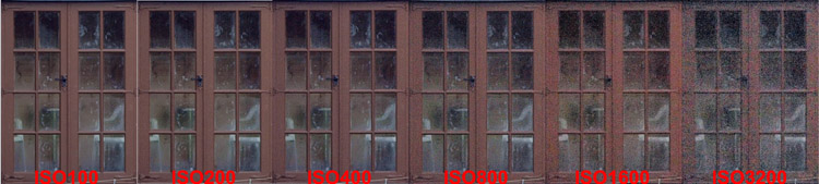 CRITIQUE (OUTSIDE): These results show how important exposure and light and shade make to the results. In exposure terms the white of the window surround is over exposed and the deep shadows are under exposed. This is reflected in ISO noise; the lighter the area the less prone to noise and vice versa. When shooting at high ISO be aware of the undue noise that will show in the darker areas of the image and, where possible balance this out by compensating. Of course there will be times when you cannot do this and will need to rely on noise reduction in post processing. This brings me neatly to in-camera noise reduction (filtering). NOISE FILTERING: The E-3 has four choices for noise filtering; Off, Low, Standard, High. Whether OFF is actually 'off' is subject of some debate; I'd imagine off means noise filtering is taking place albeit at a very low and discreet level. As I said earlier I believe it's best to leave these set to OFF until you are familiar with the effects. Using the same target as the ISO tests above, I set the E-3 to ISO 1600 and took four consecutive images with the Noise Filter set to each of the four choices to see the impact on the image, sharpness and detail. I used the darkest area as choice for the crops as this suffers most from intrusive noise.