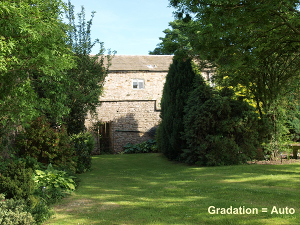 Shadow Adjustment Technology (SAT): Following in the wake of the E-3 the E-520 offers SAT controlled by the GRADATION settings in the menu. This is another level of in-camera control and processing and is very subtle in its application. There are four levels offered; Normal, Auto, High Key and Low Key. As far as I can see the Normal setting means no adjustment takes place or it is so subtle I cannot see what it does. The Auto setting does work and work well. It slightly underexposes the scene and applies a slight lift to the shadow levels producing results that might prove challenging if you were relying on post processing. The secret is being able to recognise those circumstances where SAT (in particular Auto Gradation) will deliver. Anywhere you have both heavy shadows and 'normal' lighting will benefit from the AUTO Gradation setting. Here's an example where I applied each of the four settings in sequence: