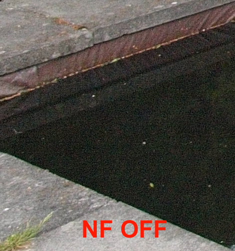 Noise Filter: I keep the camera in the same position and set the ISO to 1600 for each shot. I set the NR in the camera for each of the four settings; off, low, standard and high and record one image per setting. Here's the 100% cropped results: