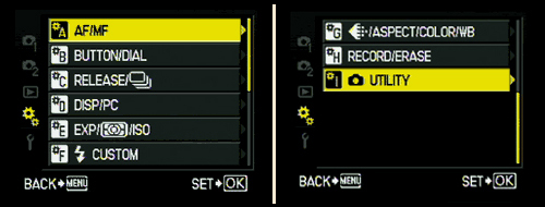 RESET LENS: On/Off (resets lens to infinity when camera turned off) When enabled the lens will reset to infinity on camera shut down. A sensible feature that is designed to protect the lens barrel. OBSERVATIONS: Leave this set to ON.
