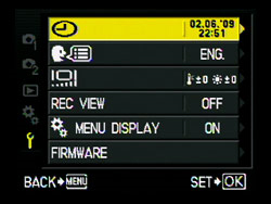 SPANNER Menu: CLOCK: Here you set the correct time and date; yes, it is important if you want that part of your EXIF information to be right! Bear in mind too the internal clock has no way of knowing the season (daylight saving) so you must alter this manually twice per year.