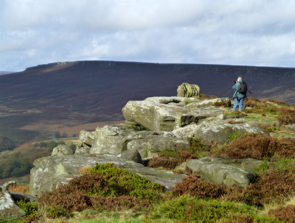 Unfortunately the weather took a turn for the worse and the few spots of rain turned to driving rain, but at least we were able to test the weather sealing of the E3 and 11-22 combination! Not too many photos were taken as the lens was covered in rain spots within seconds of being cleaned. We did get to try the 'Live View' function and with the camera on a tripod and the screen swung and tilted made the experience a positive one. It was useful to be able to assess the WB, exposure etc. without having to stoop and look in the viewfinder, the live histogram proved extremely useful. It was also good for the fact that the whole group could gather round and easily see the screen. I could see this as a useful tool for someone teaching on a photography course. We gave up on the ridge as not only had the rain become torrential but the mist came down and put an end to our fun! We retreated to my house to dry off and have a brew, we dried off the E3 and spent more time getting familiar with some more of its functions. We put on the 50-200 and with the lens fully zoomed out tested the IS ability, shooting at 1/80 handheld the E3 produced very sharp results, with the IS off the camera shake was very evident and couldn't produce a useable image. Later in the day the rain cleared up treating us to some wonderful light so we made our way to Carhead Rocks and Higger Tor above the village of Hathersage for more testing. I'd now had a couple of hours with the E3 and was really enjoying myself, the camera felt right at home in my hands. I was operating the controls without having to think too much. I really like the viewfinder; it looks huge and bright at the side of my E300, also having a 100% view meant I didn't end up with a shadow that intrudes into the edge of the frame. By the end of the day I felt that I'd been using the E3 for weeks not a few hours and felt reluctant handing it back!