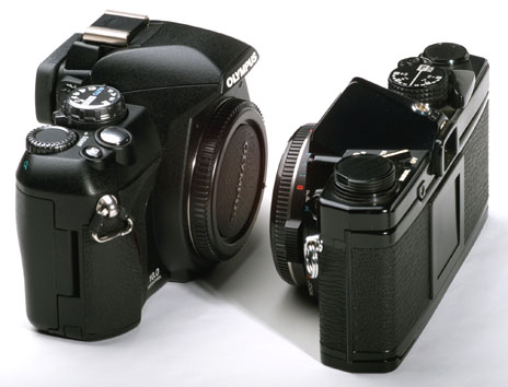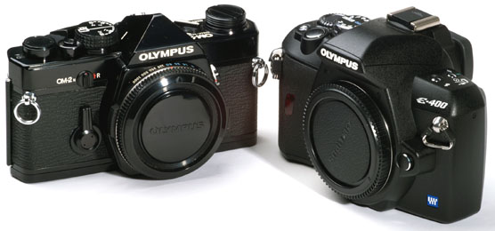 SIZE COMPARISON - BODIES: I'm going to compare the E-400 with one of the most capable and popular semi-professional OM's ever made; the OM2n. (It just so happens to be my favourite OM too). Let's take a look: