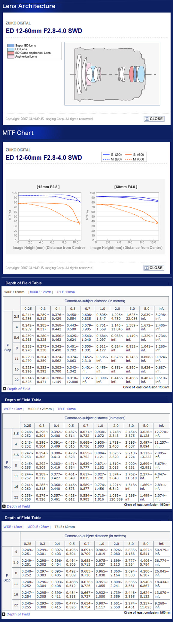 ZD 12-60mm SWD Information chart (architecture, MTF, DofF) here