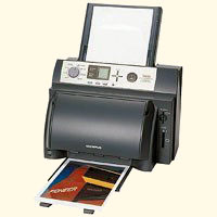 INTRODUCTION: I no longer use my trusy old Epson 740 Photo Quality inkjet as I (a) have little room for it and (b) have only occassional need for 'HQ Photo' printing. This means the printer stands unused for weeks or months. Herein the problems; no space, little use. Whenever I need it I have to spend ages going through the print head cleaning routine to find that as soon as the blocked nozzels are clear I'm out of ink. Living in the middle of no-where is great except when it comes to these times. I've tried keeping a spare set of inks only to find they don't; (keep well). It means a round trip of around 80 miles to get new cartridges. Not only does this add heavily to cost, by the time I've done all this I've gone right off the original idea. (I have two high grade lasers; HP 2300 monochrome and Minolta 2210 colour and for the vast majority of my personal printing needs these do fine - I reckon 98% of my personal printing is mono anyway). For about 18 months I've been thinking about my options for those times when I'd like to print out a photo or two. Inkjet is out for stated reasons. Lasers produce excellent results but they aren't photo quality. I've no experience of bubble-jets but suspect they have the same problem as inkjets if not used regularly. The only option left is dye-sub. Before I took my thoughts further I looked at my probable requirements. My missus has an inkjet I can access for A4 size stuff (though her charges are a tad heavy :-o) so the occassional 8" x 10" is catered for. Anything larger means a PhotoLab in any case. It seems my basic requirement is for 6" x 4" prints on demand with possible huge gaps of time between print runs. Research tells me dye-subs can be left for 6 months without concern so I'm drawn to this technology. I do not want an A4 capable dye-sub so the larger HiTi and Olympus P400 are out. This leaves an array of 'home lab' printers from Sony, Canon, Kodak and Olympus. (I was surprised to discover the little Epson PictureMate is a mini-inkjet). As an Olympus fan I looked at their range first. The P10 and new P11 are well specced though I'm not keen on the cube like appearance. HiTi's printing 4 x 6 are quite large but the Canon and Sony offerings are very small and neat. Decisions! Now it just so happened that recently one of our big brand stores was offering a good deal on the Olympus P-S100; in fact it was for free with another purchase. It seemed to fit the bill, I was going to buy the other bit in any case, so I plumped for it.