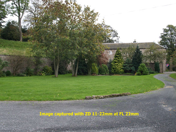 COMPARISONS: I'm not going to bore you with specifications of both lenses - if you've got this far you will have already gathered this information. Nor am I going to compare the ZD11-22mm to the ZD14-45mm either; a comparison with the better specified ZD14-54mm should suffice. Obviously I can only compare similar focal lengths on each lens so I sample at 14mm and 22mm. My method is simple; tripod with head set to level, E-1 body mounted thereon, lenses attached, images taken using the remote, mode A set to f=3.5. First lens is the ZD14-54; shot one at 14mm (easy as that's its widest) and shot two at 22mm and checked for focal length on the monitor. Attach the ZD11-22; shot one is at 14mm and checked for correct focal length on the monitor and shot two at 22mm (easy as that's its longest). Nothing moves between shots so any variation is due to the lens internal construction. No settings are altered between shots.